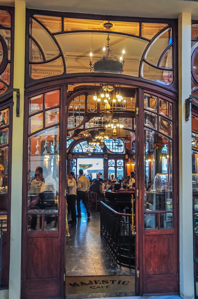 Continuing down Rua de Santa Catarina, the corner bulding which houses Marcolino Relojoeiro has recently been refurbished (just look at the before photos from Google streetview!). The building stands tall and proud, with a daring red colour, details in the window frames beautifully kept. A bit up the street, the Art Deco building Coliseu do Porto is worth a glance as well. Back down the pedestrian street, where Majestic Café offers the most expensive coffee in town. However, it’s worth the extra spend to sit inside and marvel at the details in every single item. It’s like a mini Art Nouveau museum, like imported directly from Paris.